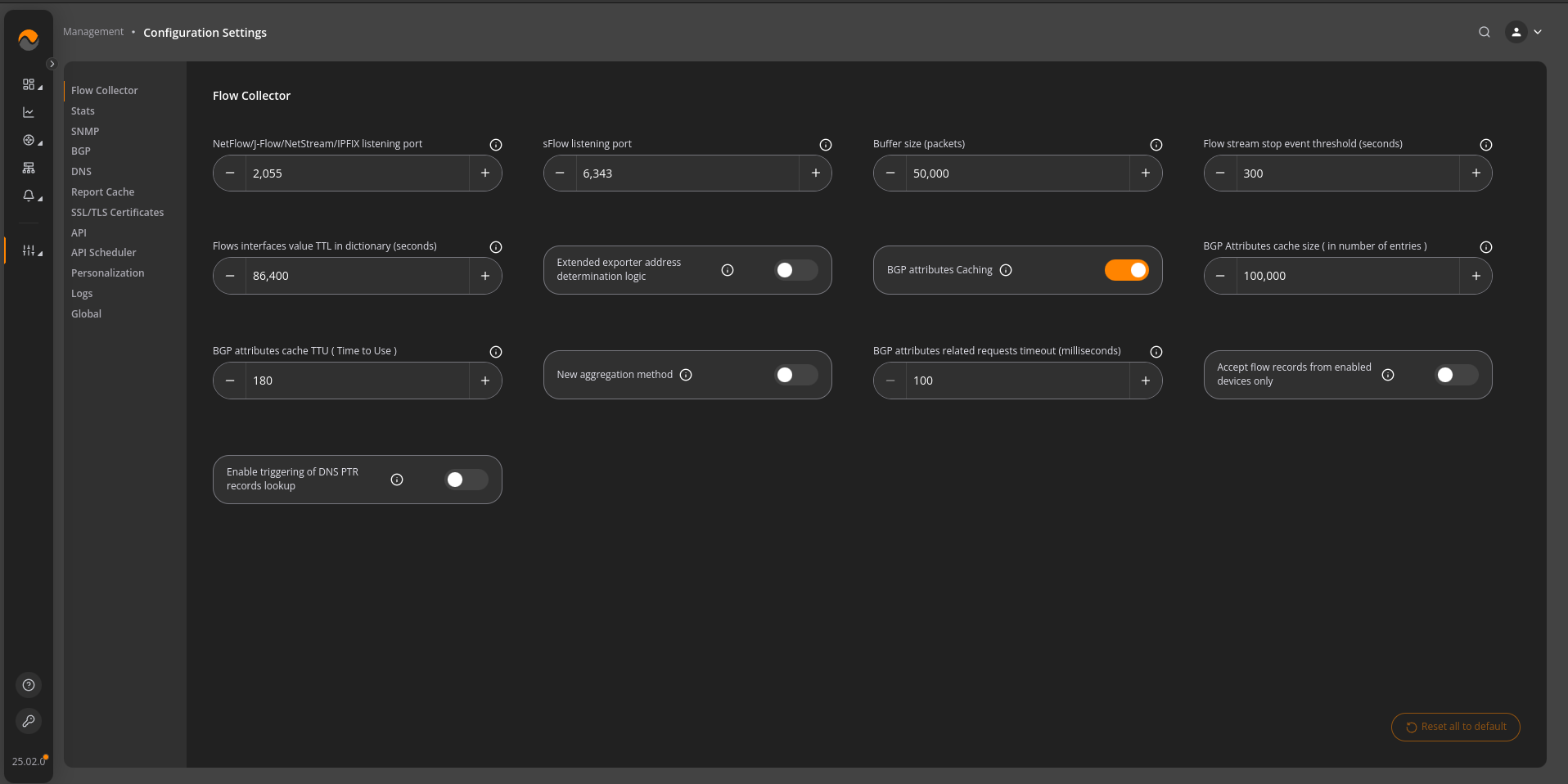 Send flow to your NFA instance. For NetFlow use port 2055, for Sflow port 6343. You can modify standard ports via NFA’s Frontend by going to Management > Configuration Settings.